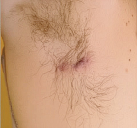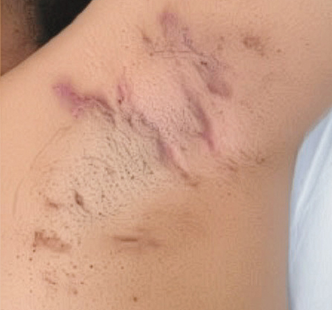 - 정상피부와 염증성 결절 피부누공 흉터가 공존하는 단계