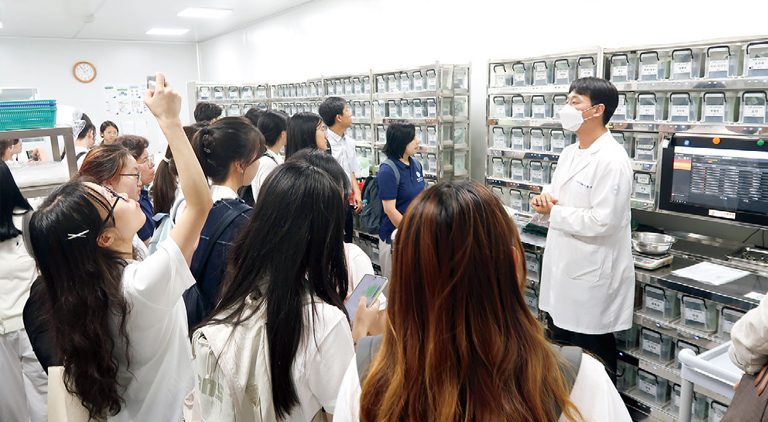 지난 7월 15일 중국해양대학교 방문단과 부산대학교 약학대학 교수 등 26명이 우리 병원을 방문했다. 부산대학교 약학대학과 중국해양대학교와의 국제공동 학술교류를 위해 부산대학교 방문차 우리 병원의 한방종합검진센터와 중풍뇌질환센터, 요법실, 한의약임상연구센터, 한약표준조제센터를 둘러보았다. 특히 중국 방문단은 한약표준조제센터의 처방 조제 시스템에 관심이 많았으며, 그에 따른 질의응답 시간을 가지고 우리 병원과 한의학에 대한 이해도를 높였다.