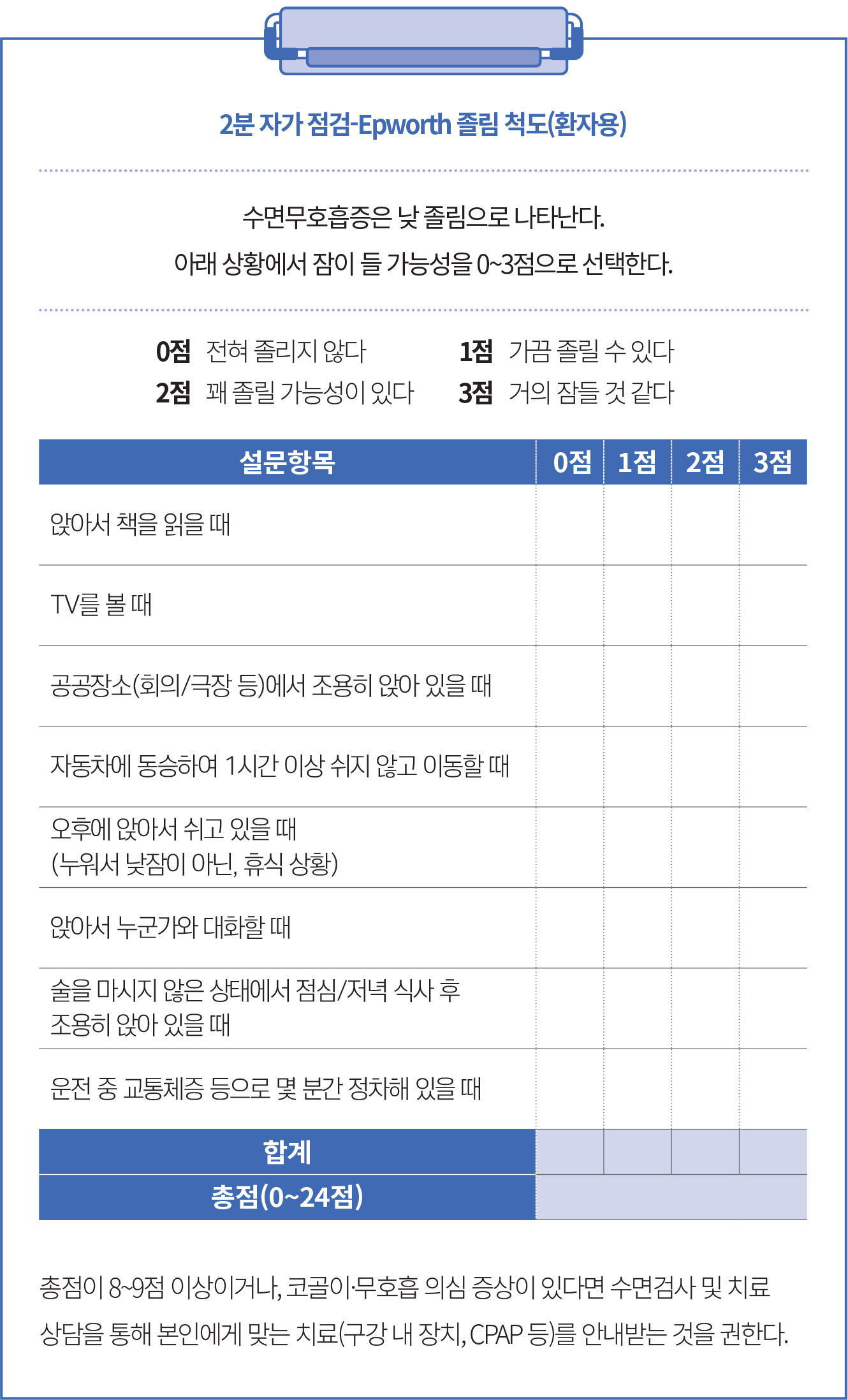 수면호흡장애의 가능성이 있어 상담을 권한다.