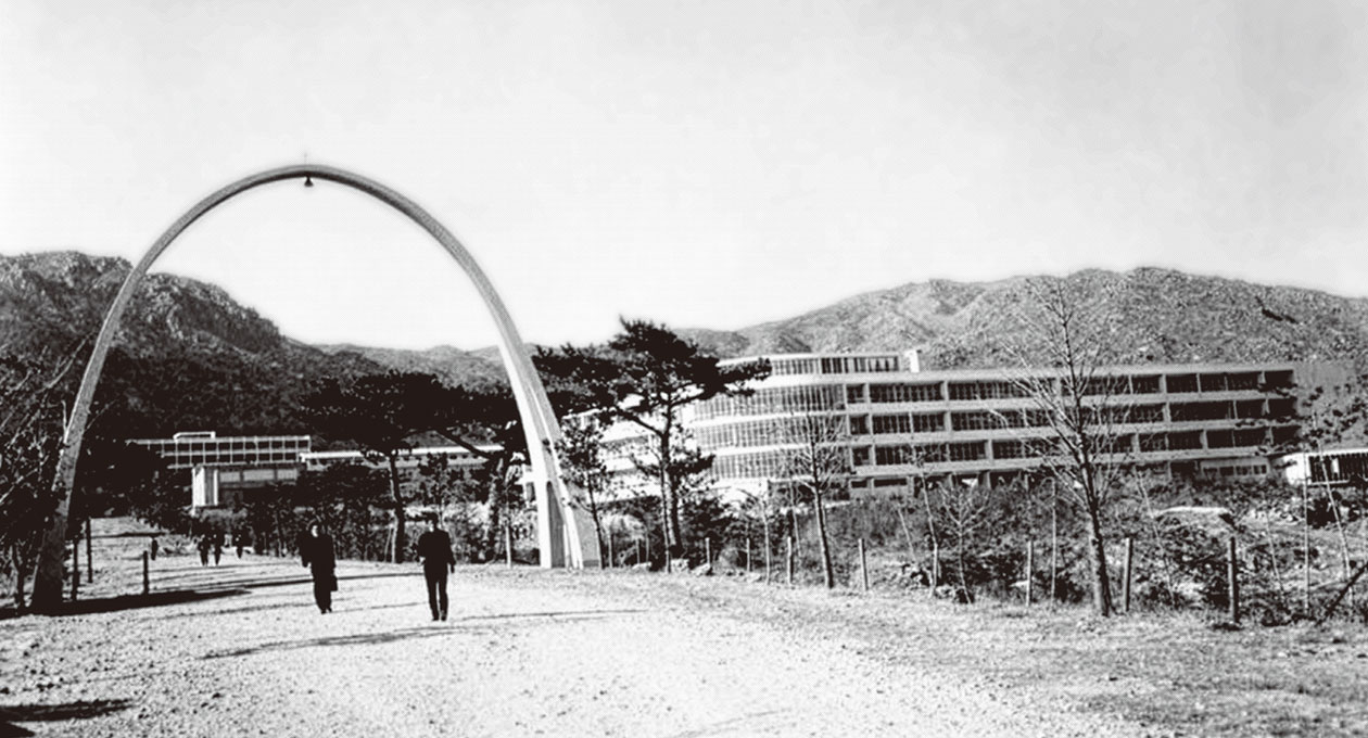 1953년 종합대학교로 승격한 부산대학교는 이듬해 장전동에서 교사 신축 기공식을 거행하며 ‘효원’ 시대를 열었다. 1956년 공과대학 본관과 도서관, 박물관이 들어섰고, 1959년에는 오늘날 부산대학교의 상징인 대학본관이 준공되었다.